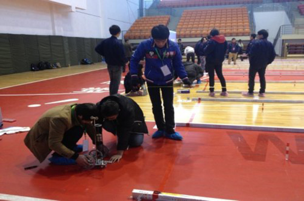 第四届上海市大学生工程训练大赛决赛现场,集训队赛前调试。