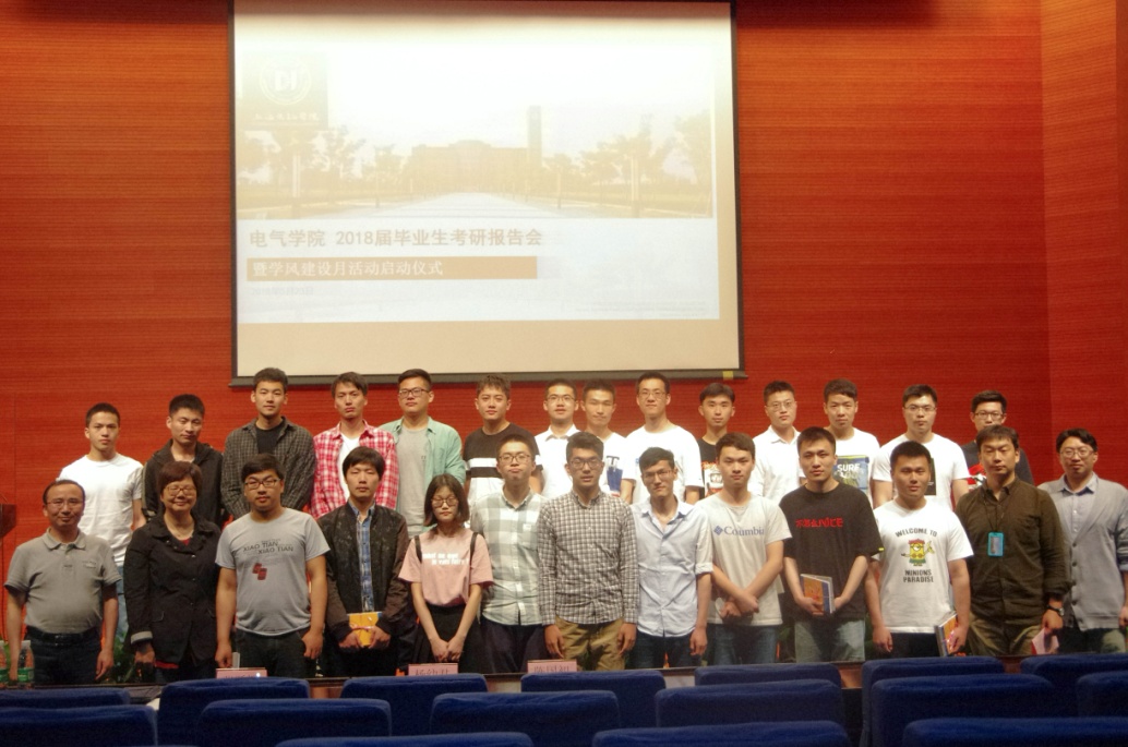 5月23日下午,电气学院2018届毕业生考研报告会暨学风建设月活动启动仪式在临港校区图书馆报告厅召开。电气学院院长陈国初、电气学院党委书记杨幼君出席会议,学院考研成功的45名同学及200余名师生参加会议。会议由电气学院党委副书记、副院长张跃辉主持。