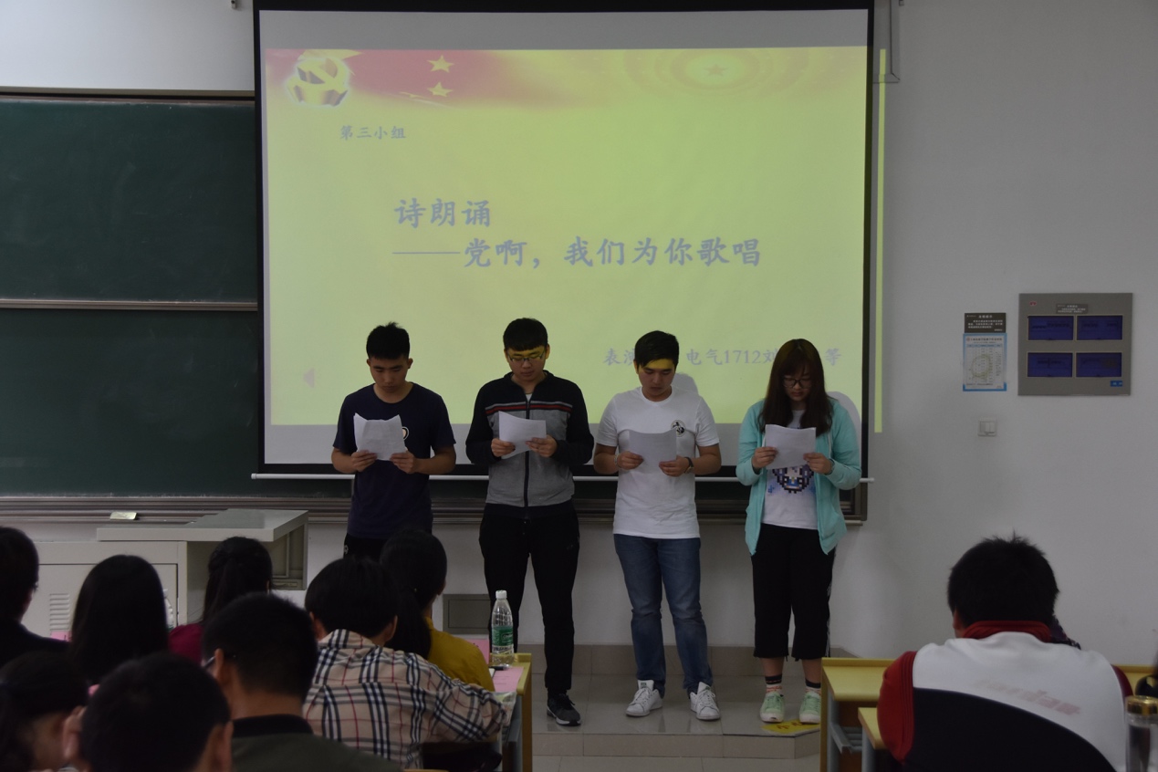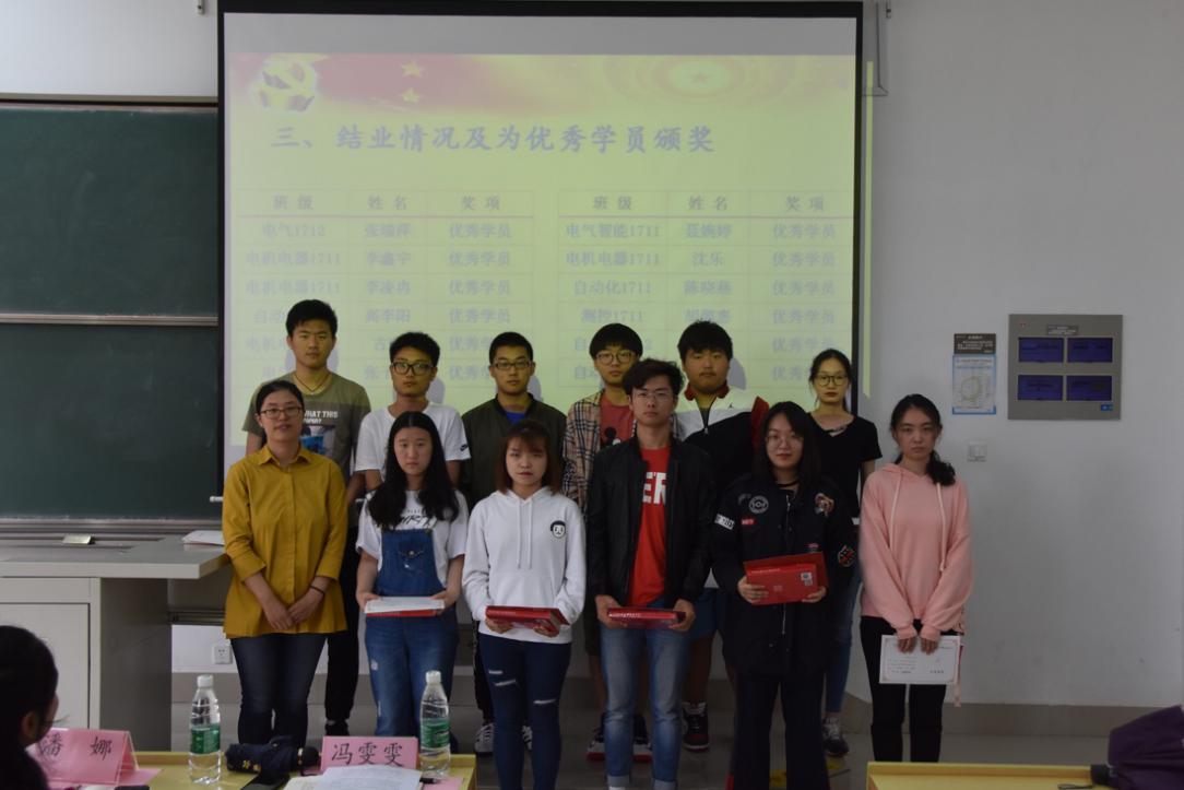 典礼在雄壮的国歌声中拉开帷幕。随后全体与会者以观看视频的形式,回顾了党课的理论学习、参观实践、小组讨论及节目汇演过程,带领学员们又重温了十九大精神、党史校史及党员的基本条件等经典内容。接着专职组织员冯雯雯老师宣读结业情况和优秀学员名单,并为优秀学员颁发奖品。电气1712张瑞萍和电机电器1711李鑫宇作为优秀学员代表发言,他们回忆了自己上党课期间的点滴,抒发了对学校、对同学、对国家的热爱与感激之情,深情地讲述了自己在党课学习中的收获。学员们还以小组为单位通过诗朗诵及唱红歌等方式抒发了对共产党的热爱。