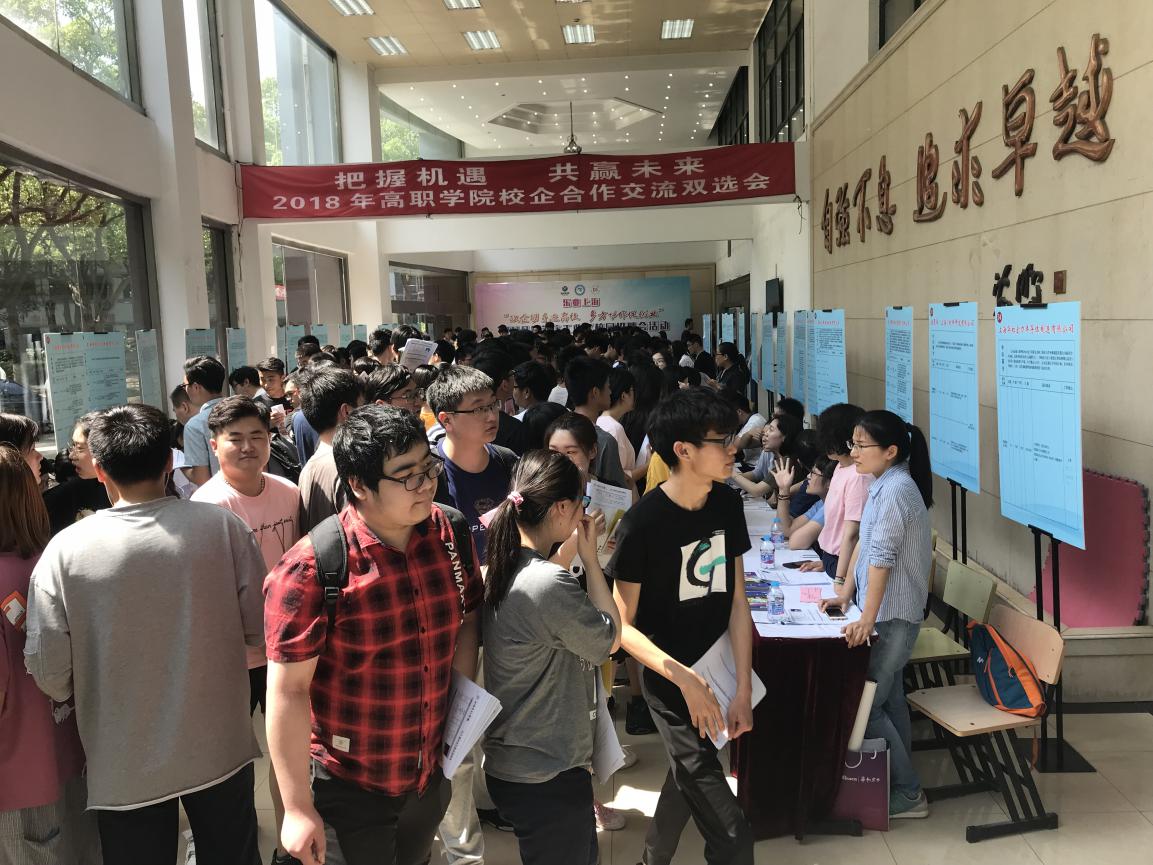 6月14日下午,高职学院首次携手莘庄工业区社区事务受理服务中心在闵行校区联合举办“把握机遇,共赢未来”2018年校企合作交流双选会。此次交流双选会吸引了莘庄工业区、华域汽车集团、航天803研究所、通力电梯有限公司、博朗(上海)有限公司、上海微创软件有限公司等53家知名企事业单位参加,提供1000多个就业岗位,需求专业覆盖我校高职学院2018届及2019届毕业生全部专业。