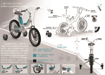 3-6岁的孩子因为身体成长发育得快,每个家长几乎要购买两三辆自行车才能满足孩子娱乐运动的需求。能否设计一款能够伴随孩子一起 “成长”的儿童自行车,既节省家庭开销,还利于孩子成长发育。这个生活中的小烦恼,被上海电机学院产品设计专业大四学生金炜伦发现了,她深入家长和厂家进行调研,设计出了 “儿童可成长自行车”,获得了第三届 “汇创青春”——上海大学生文化创意作品设计类一等奖。