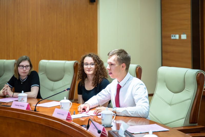 2018年7月27日,德国凯撒斯劳滕应用技术大学暑期学生团欢迎会在临港校区行政楼345会议室举行。上海电机学院党委副书记杨若凡,凯撒斯劳滕应用技术大学应用物流与聚合物科学学院院长、皮尔马森斯校区负责人Ludwig Peetz教授,凯泽斯劳滕应用技术大学中国区项目负责人陈立平教授等4位德方教师,上海电机学院合作与交流处、中德智能制造学院的领导,上海电机学院的学生代表与志愿者,凯撒斯劳滕应用技术大学学生团的所有学生参加了欢迎会。