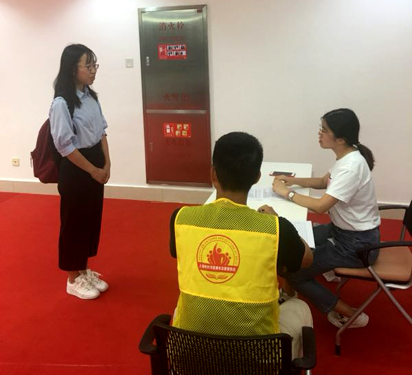 面试现场既充满着竞争,也表现了上海电机学院青年学生对志愿者服务的热心,对国家利益,集体利益的重视。