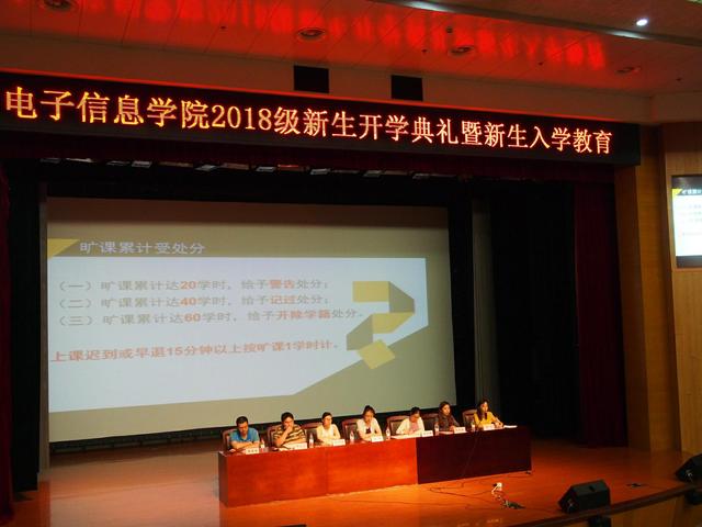 典礼由张珂副院长主持,首先全体师生一同起立奏唱国歌。接着王淮亭副院长从学院的发展历史、组织结构、专业情况、师资力量、教学成果等方面介绍了电子信息学院的基本情况。黎明副院长围绕学院学科与科研工作,从”What,Why,How”三个方面讲解了科研工作的内容、意义与方法。随后,学院党支部书记蒋建军为在炎暑酷日下无私奉献、认真尽责的优秀班助班志代表颁发了奖状。最后,蒋建军书记从“华丽转身,融入电机;点滴积累,勇往直前;静心思考,踏实求学;懂得感恩,学会担当”四个方面寄语新生,希望同学们在四年学习生活中做一个要求上进,懂得感恩,传递正能量的优秀“电机人”。