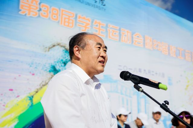 胡晟校长为本届运动会致辞;上海市教委副主任倪闽景、上海市体育局副局长罗文桦讲话并预祝运动会取得圆满成功,并感谢上海电机学院为学校体育、地方群众体育所做出的努力,希望上海电机学院继续为上海体育事业的发展做出更大的贡献;校党委孙培雷书记宣布:上海电机学院第38届学生运动会暨第23届教工运动会开幕!