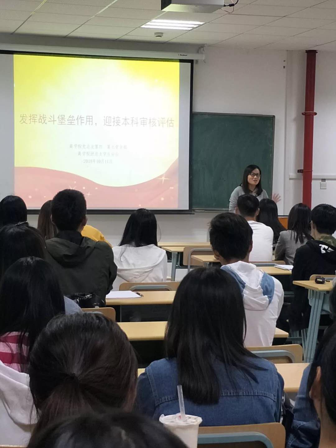 10月11日晚6点,商学院党总支第三、四党支部与商学院团总支联合在商院楼220召开了“发挥战斗堡垒作用,迎接本科审核评估”学习动员大会。商学院辅导员、全体学生党员、入党积极分子、团学骨干参加了此次会议。