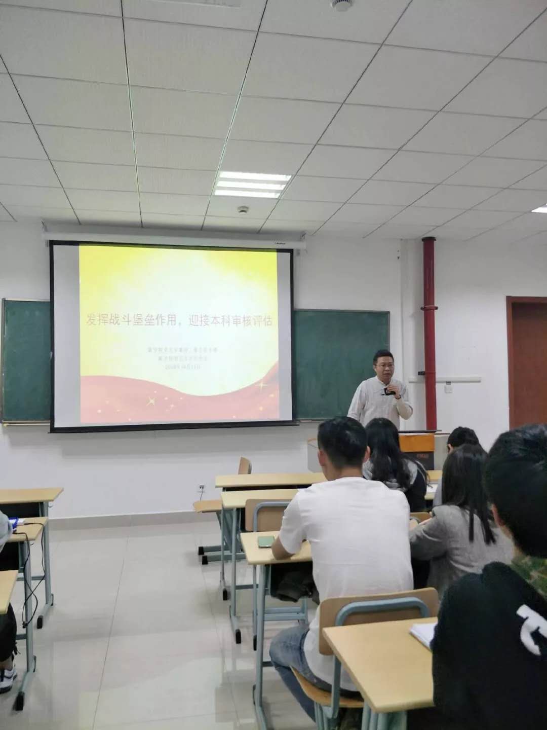 最后,孙慧老师代表商学院党总支对全体学生党员、入党积极分子、学生干部进行了动员,要求参会学生骨干要发挥好战斗堡垒作用与模范带头作用,从自身做起,带动身边同学,齐心协力迎接本科审核评估,为学校发展贡献力量。