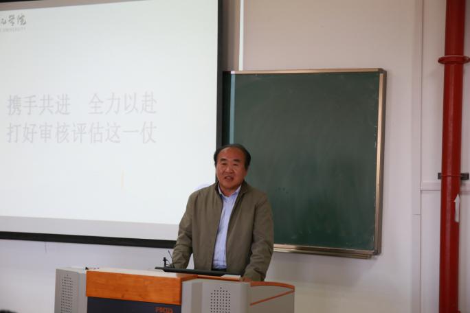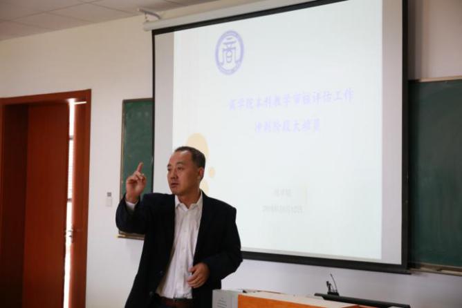随后,熊鸿军作阶段性迎审评估总结,指出当前阶段存在的问题。他强调,全体教职员工应从自我评估报告中积极学习,形成浓烈迎审评估的氛围,人人重视、人人负责、人人参与。