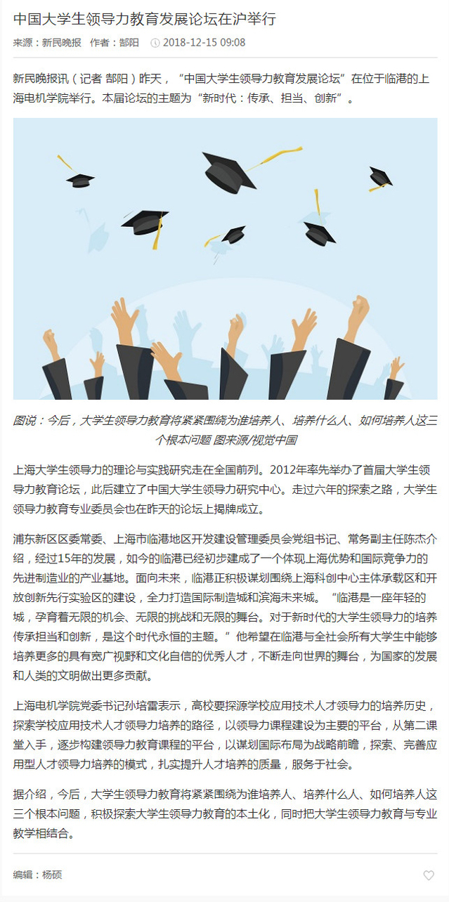 【新民晚报】中国大学生领导力教育发展论坛在沪举行