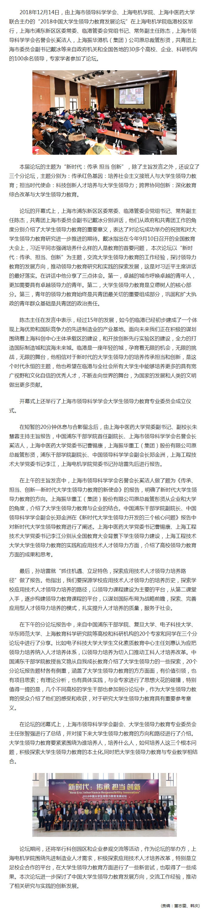 【人民网】2018中国大学生领导力教育发展论坛在上海电机学院举行