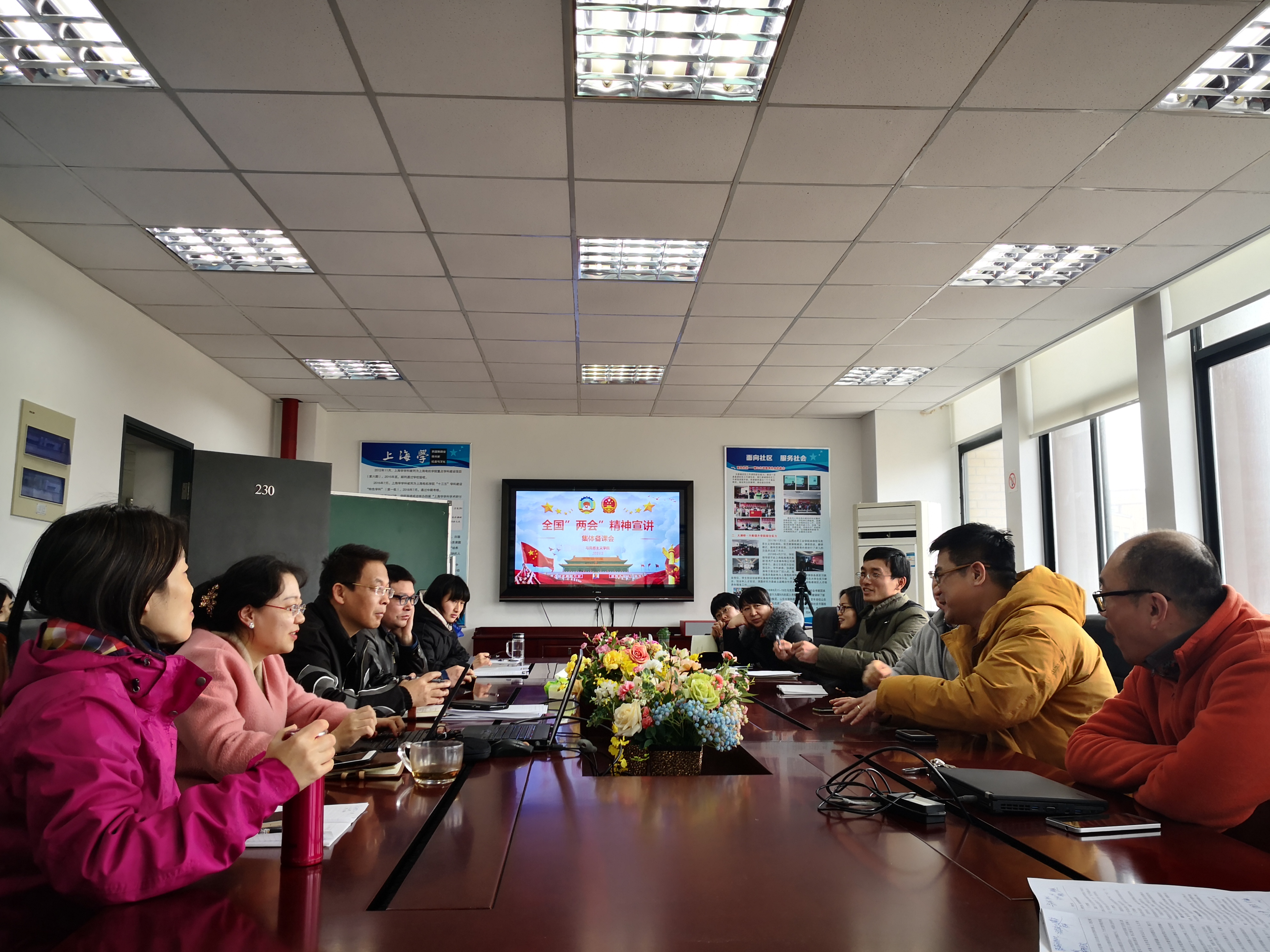三月,春意盎然,一年一度的全国“两会”在北京隆重召开。为及时有效地向学生传递“两会”精神,帮助学生了解国家的大政方针,马克思主义学院于3月8日下午举行全国“两会”精神集体备课会。备课会由马克思主义学院副院长宋洁主持。
