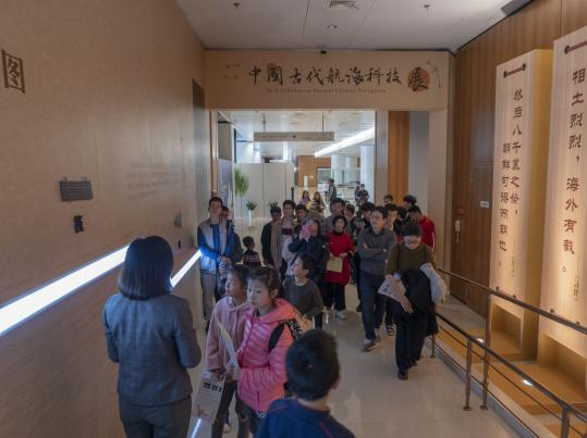 “扬帆队”观赏航海数字影片,给参与者带来不一样的视觉冲击!“启航队”进行“疯狂猜船”的游戏活动环节,为航海船舶知识增加了不少趣味性!亲子组活动火热进行,小朋友们参与了吹乒乓球的小游戏和折小船的游戏,玩得不亦乐乎!来自航海博物馆的指导老师,为本次活动进行专业化的指导,带领队伍参观古代科技馆与现代船舶馆,并进行了细致深入的讲解。同学们听的津津有味,还不时地有小朋友提出疑问,指导老师给予通俗易懂的解答。