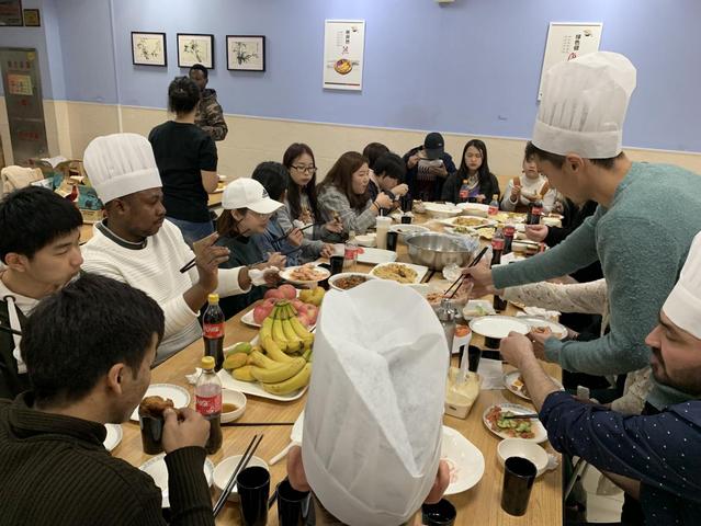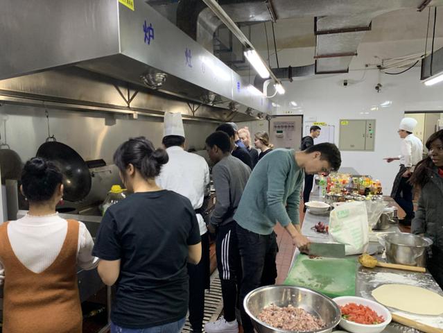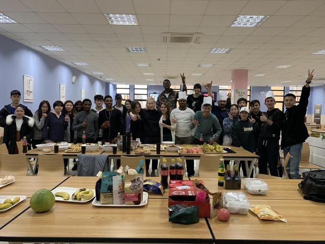 活动开始前,同学们早早地就到达了活动场地进行食材的准备,来自不同国家、不同地域的学生,因为美食聚集在一起。活动正式开始后,各位大厨纷纷上场、大显身手,让后厨显得格外热闹。在烹饪过程中,大家一会儿做着大师傅、一会儿化身小徒弟,积极友好地交流着美食制作的心得和不同地域的文化。经过一个多小时的等待,美食纷纷出炉,中国学生包饺子、做了炒饭、炒了冒菜,留学生拌了沙拉、烧了炒面、炸了鸡翅,让食客们大饱口福。