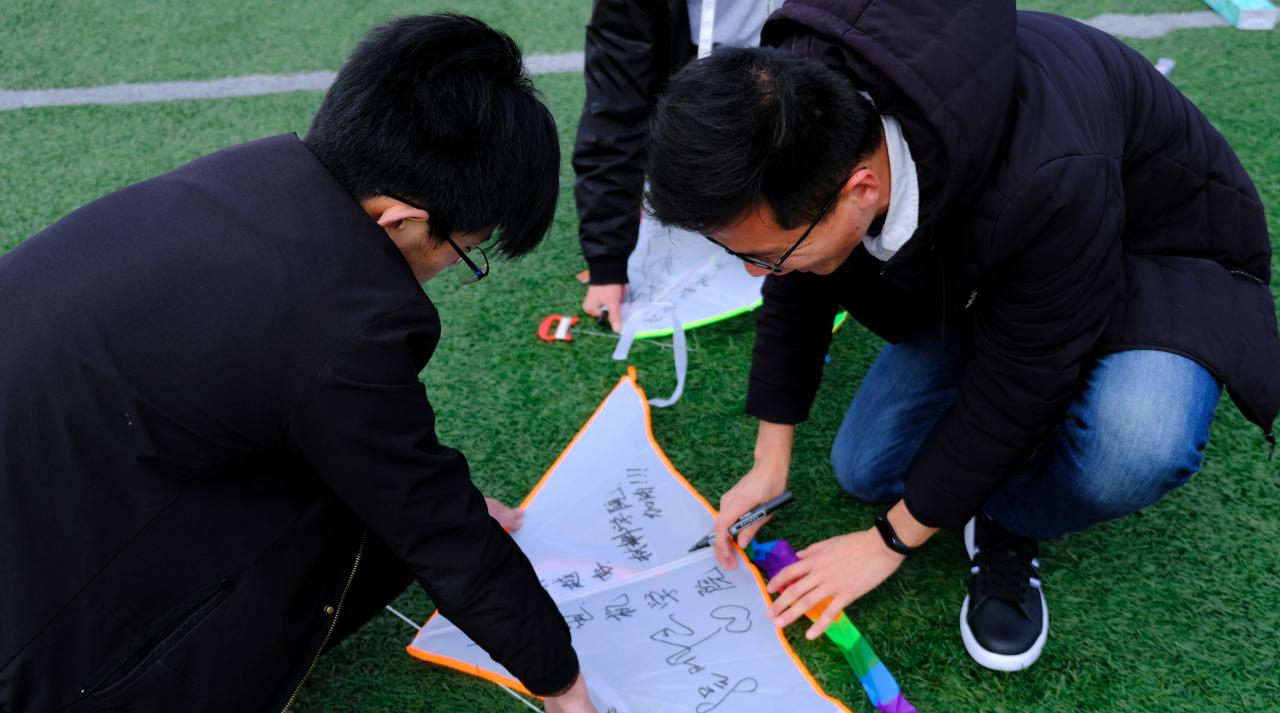 风筝除了是悠久的传统文化,更是人们用来放飞理想、寄托心愿的象征。我们的同学和老师也纷纷在风筝上写下自己对学院和学校的祝福,更寄托了自己对未来的向往与憧憬。
