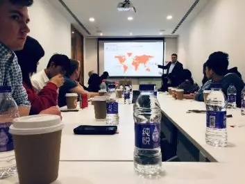 风雨伴着雷电,在神清气爽中开启了一天的旅程。在一片欢声笑语中,到达了旅程的第一个驻足点:ALLEGION公司,开讲者为大家准备的暖暖的咖啡,为长途跋涉的旅人们注入了新的活力。讲座所涉猎的亚太经济板块也刚好为这次UNI商学院的学生们扩充了专业知识,外国友人们也对有关于中国今年网络经济发展的现况赞不绝口。