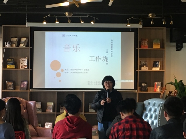 4月17日下午,一场别开生面的心理讲座——音乐工作坊,在学生事务中心壹书屋举行。本次活动的主讲人是上海学生心理健康教育发展中心副主任张海燕教授,参加本次讲座的成员有学校心理咨询教师代表、各学院心理健康教育工作学生骨干代表。