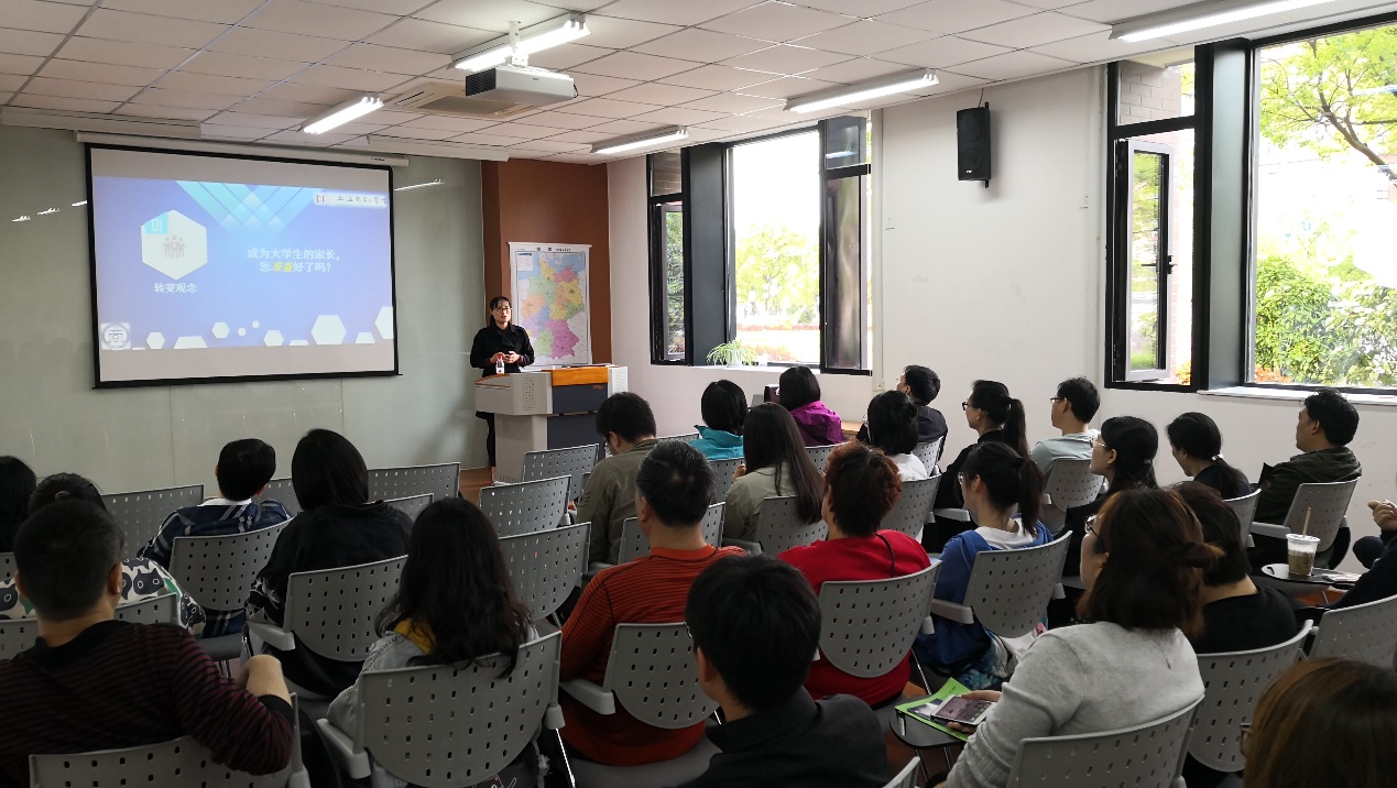学生办公室主任陈庄瑜从学生职业生涯发展的角度,向学生和家长提出了诸多建议。提请家长与孩子多沟通、多鼓励、多支持。同时,向学生和家长展示了大学四年的大体规划,为同学们后续的发展提供了初步认知。