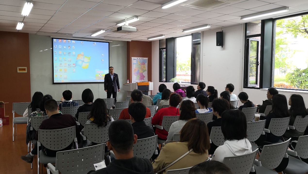 中外合作项目办公室主任王铄从专业学习的角度,要求中美国贸专业学生和家长早做规划和准备,并着重强调了美方对成绩绩点、英文水平要求等事项。