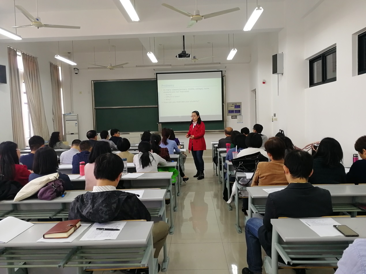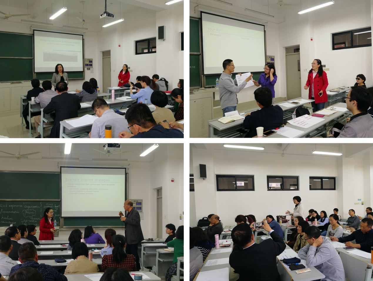 他结合当前心理学领域国际前沿学术动机理论和实践研究成果,从Empowerment, Useful, Success, Interest, Caring五大方面入手,对外语课堂进行设计,以学生为中心,激发其潜能和兴趣,给予学生主动权,让学生在课堂上获得成就感和满足感,从根本上实现从“教得好”向“学得好”转变。李明风趣幽默的授课风格,吸引了教师们积极参与互动。教师们结合自身的教学经历,对教学过程中存在的问题展开讨论,并就优秀教学案例进行分享。