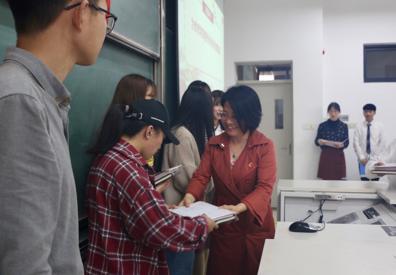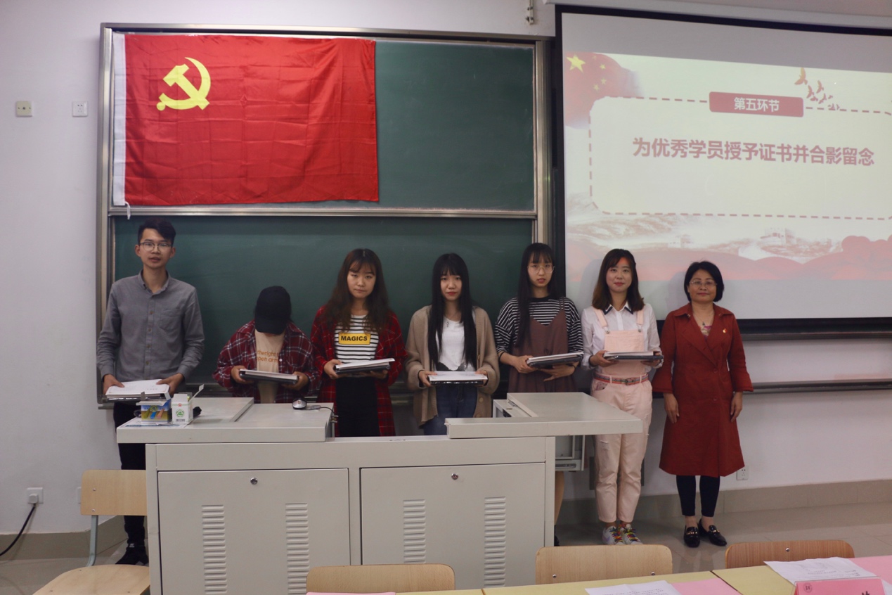 接着,商学院专职组织员孙慧老师对本期培训工作作简要总结并宣读优秀学员名单。本期党校创新线上与线下相结合的教育形式,共有62名学员顺利结业,结业率75%。评选出6名优秀学员。随后陈秀春老师为优秀学员颁发荣誉证书和奖品。