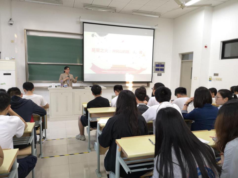 陈兰芝老师从“山之路:井冈山革命道路;山之人:井冈山英豪;山之魂:井冈山精神”三个方面解读了井冈山作为中国革命摇篮凝聚的星星之火,重点阐述了井冈山时期“以工农武装割据为依托走农村包围城市革命道路”的选择历程,指出井冈山的斗争是中国特色革命道路的起点,井冈山道路是马克思主义中国化的重要开篇,井冈山精神是中国共产党优良传统的重要精神源头。陈老师以刘仁堪、张子清、王尔琢、伍若兰等井冈英豪的鲜活故事,引导同学们共同总结、分享交流“井冈山精神”。同学们深刻认识到井冈山精神具有跨越时空的力量,实事求是、敢闯新路、信念坚定、艰苦奋斗、依靠群众是井冈山精神的重要标识。