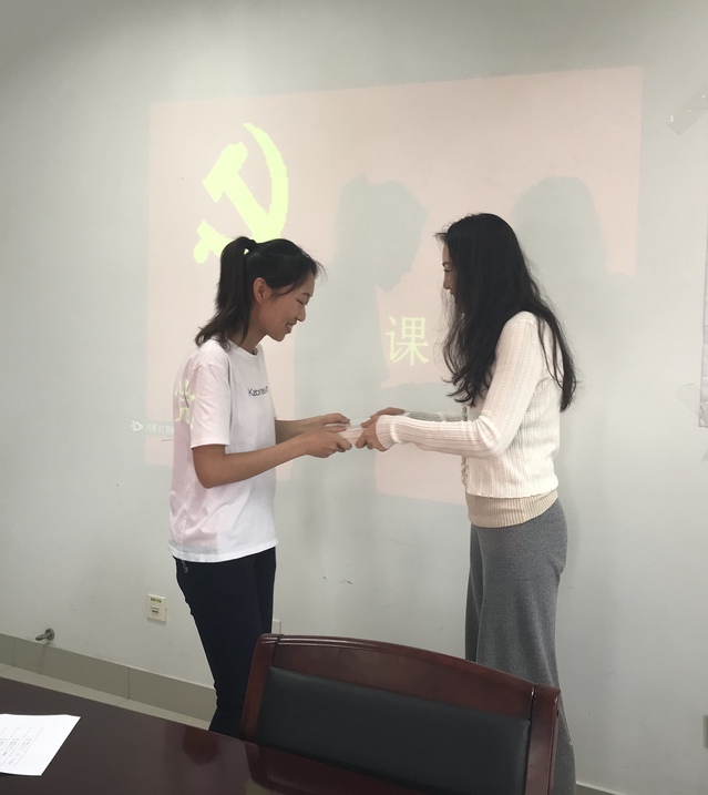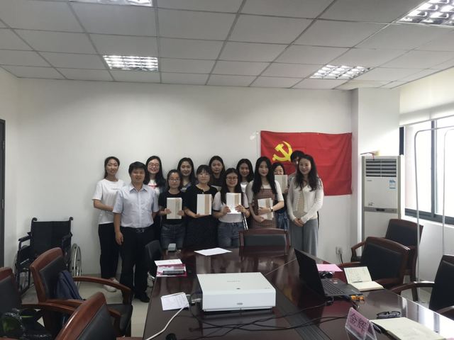 活动中,甄一捷老师代表学院向毕业生党员赠送学习材料《习近平用典第一辑》和《习近平用典第二辑》,希望党员同志们时刻不忘学习、像海绵一样吸收知识,表达了学院对毕业生党员的殷切期望和衷心祝福。
