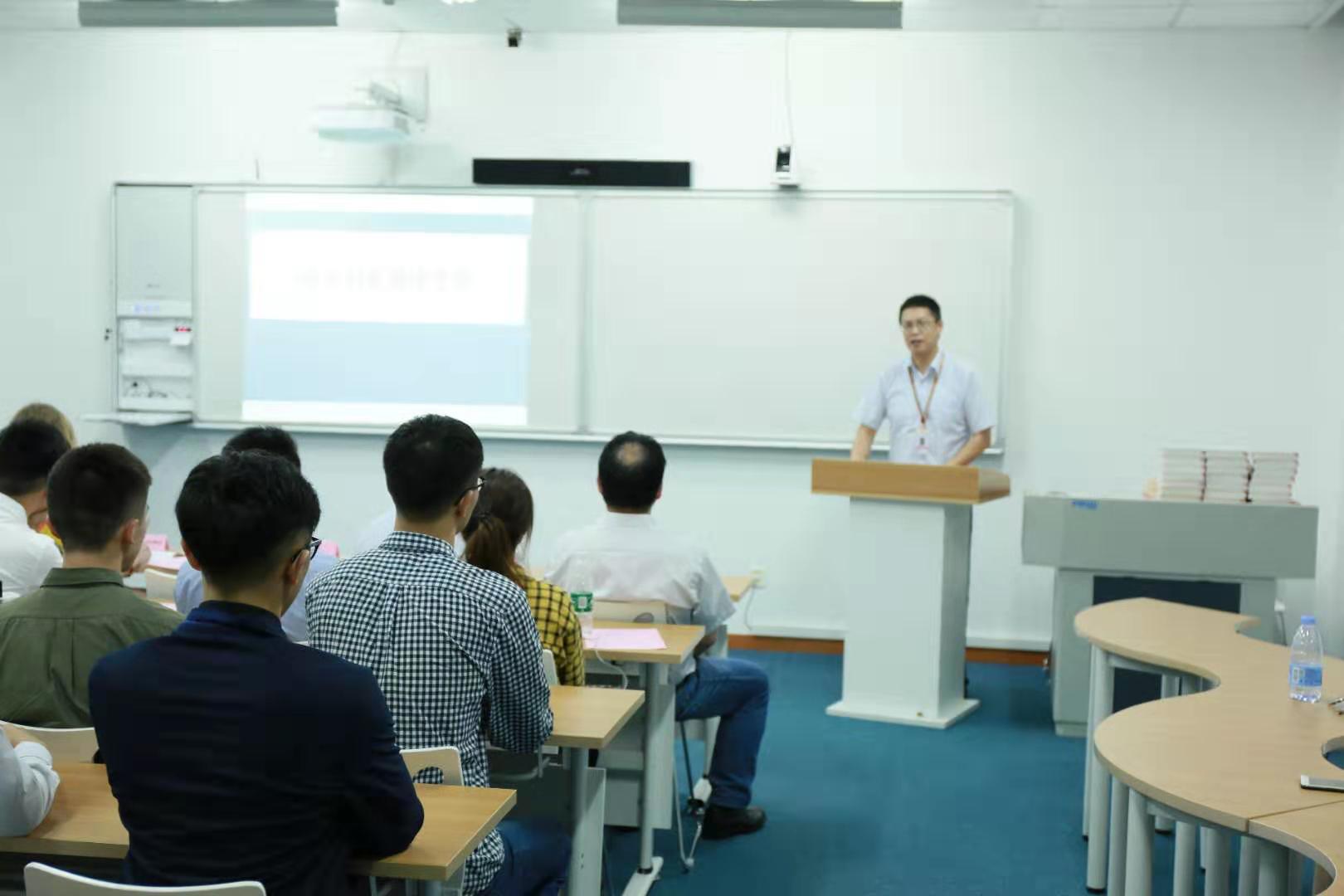 郭正毅老师代表教师发言,他深入浅出,以小见大,通过与上一届同学的对比,给了17级同学们忠告和建议。尽管同学们不懈努力得到了前往德国学习的机会,但是还不能就此松懈,未来还有很多挑战在等着他们,不忘初心,方得始终。