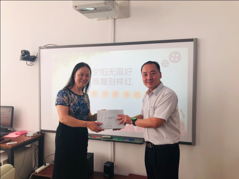 杨教授感谢大家的祝福并发表了情深意切的退休感言,她回顾了自己的工作历程,表示会一直关心学院的建设和发展。最后富立友院长代表学院对杨教授成绩和贡献给予肯定,对她多年来的辛勤劳动与无私奉献表示诚挚的感谢,并代表学院送上纪念品。