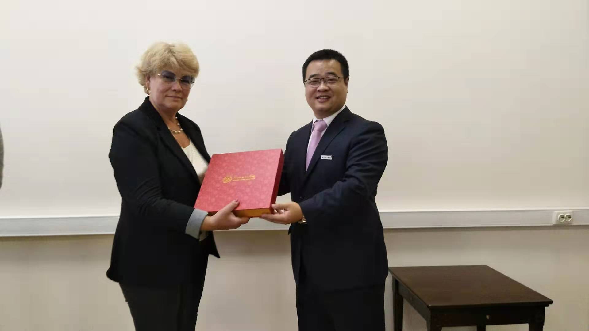 7月19日上午,莫斯科国立通讯与信息技术大学在主校区为我校师生举行了欢迎会,对我校学生交流团的来访表示了热烈的欢迎,莫斯科国立通讯与信息技术大学国际交流部主任Olgan女士以及Alex、Gulina老师,我校交流团团长尚海龙、副团长张珂老师及两校学生代表出席了本次欢迎仪式。Alex老师向交流团详细介绍了学校的概况、特色专业、国际教育情况等,并对此次访问的行程做了耐心的讲解。我校交流团团长尚海龙老师在致辞中对莫斯科国立通讯与信息技术大学的热情款待表示了感谢,并表示在中俄建交70周年之际,此次交流意义深远,期待两校继续深入合作,共同探索更丰富的交流模式,更深入的交流项目。欢迎会上,两校师生代表还互赠礼物。