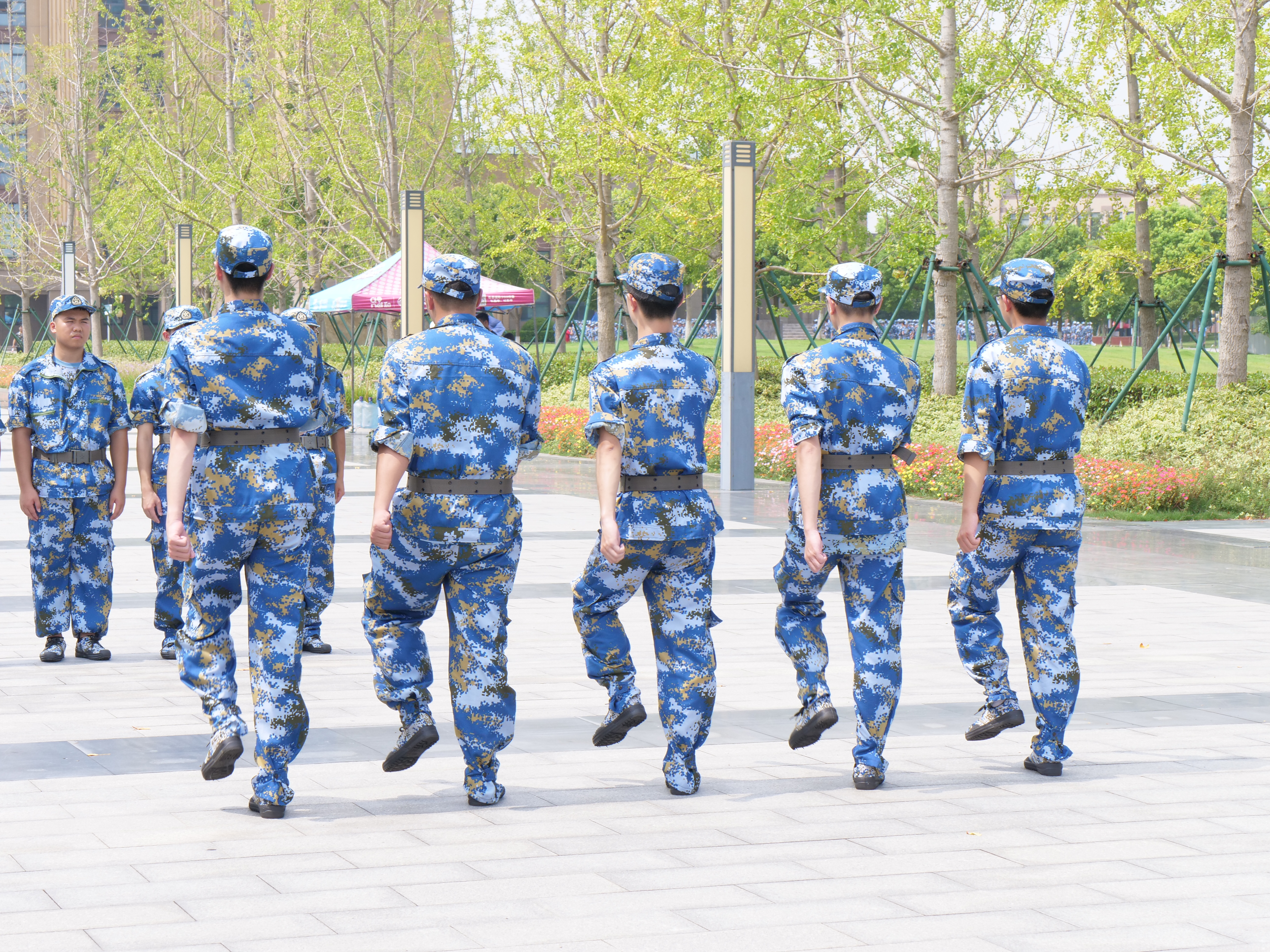 28日清早6点15分, 机械学院的萌新准时在训练场地集合完毕,开始练习站军姿、正步走等。同学们学的认真,志愿者们服务到位。在训练过程中,虽然有个别同学因为体力不支而不得不暂时离开训练队伍,但是机械学院的萌新们士气高涨。