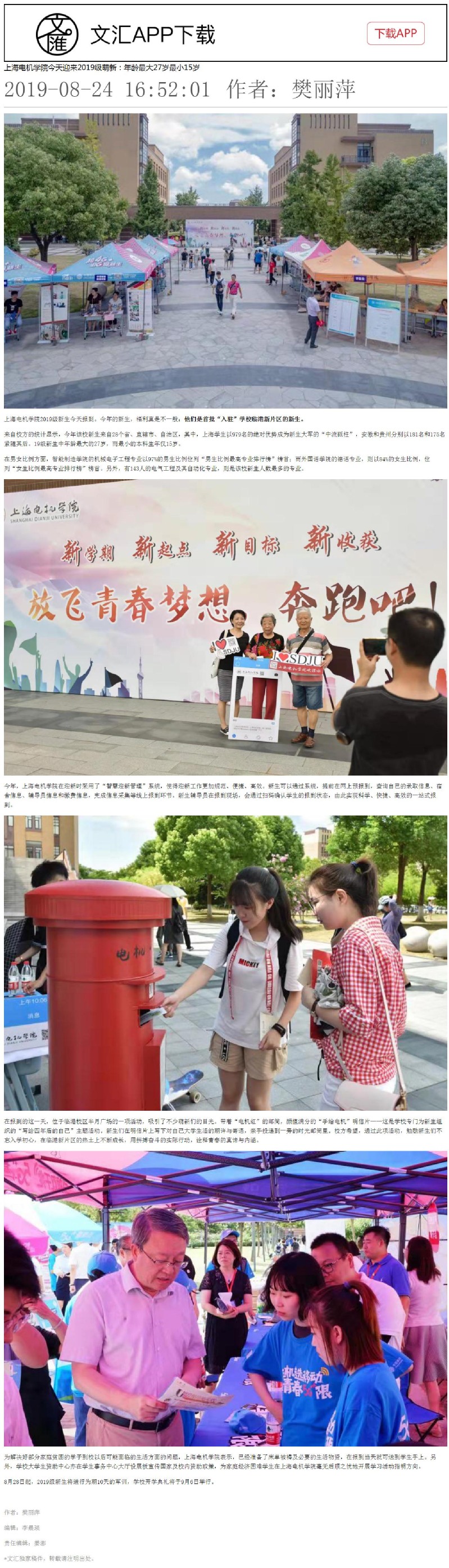 【文汇】 上海电机学院今天迎来2019级萌新:年龄最大27岁最小15岁