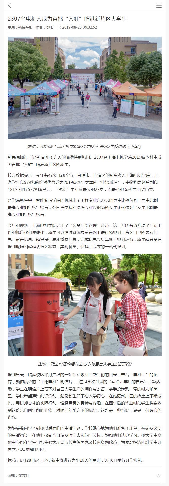 【新民晚报】 2307名电机人成为首批“入驻”临港新片区大学生
