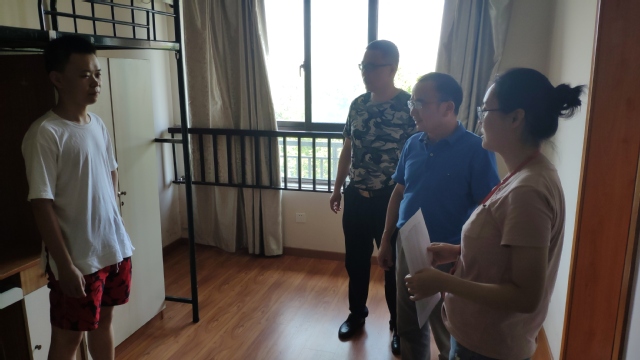 8月30日下午,电气学院院长陈国初、院党委副书记卿海龙以及学院辅导员走访了2019级研究生新生寝室,亲切看望“新电机人”。在入学伊始,为广大新生送上来自学院的人文关怀和美好祝愿。