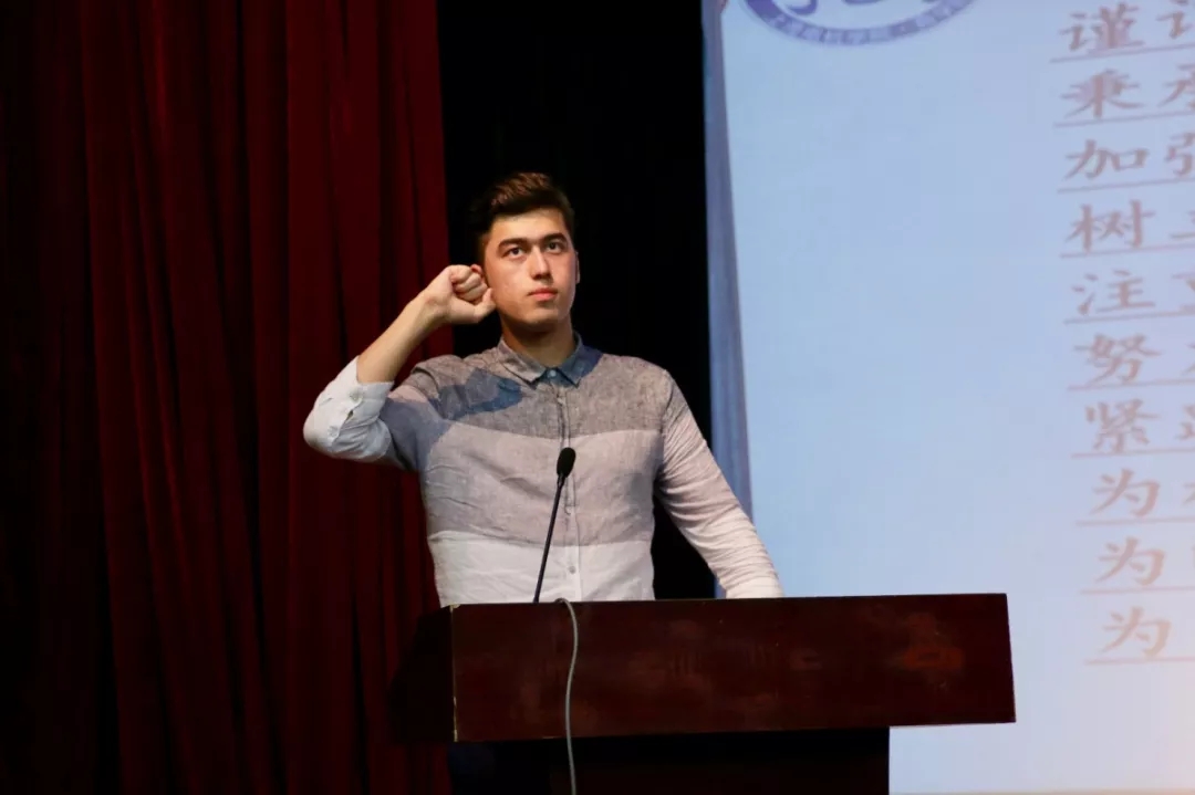 开学典礼最后,营销1911穆卡萨带领全体新生宣誓,嘹亮的口号激励了大家不断加强理论学习和专业素养,为校争光,为梦奋斗!