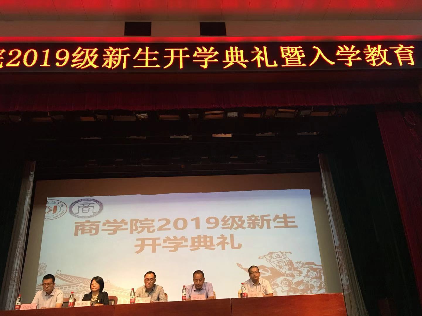 为了让新生更好地适应大学生活,了解学院的各项基本情况,9月1日晚六点半,商学院在小剧场召开新生开学典礼暨入学教育仪式。商学院党总支书记项军,院长富立友,学生工作副院长陈秀春,教学副院长熊鸿军,科研副院长马洪伟以及全体新生辅导员出席本次大会。