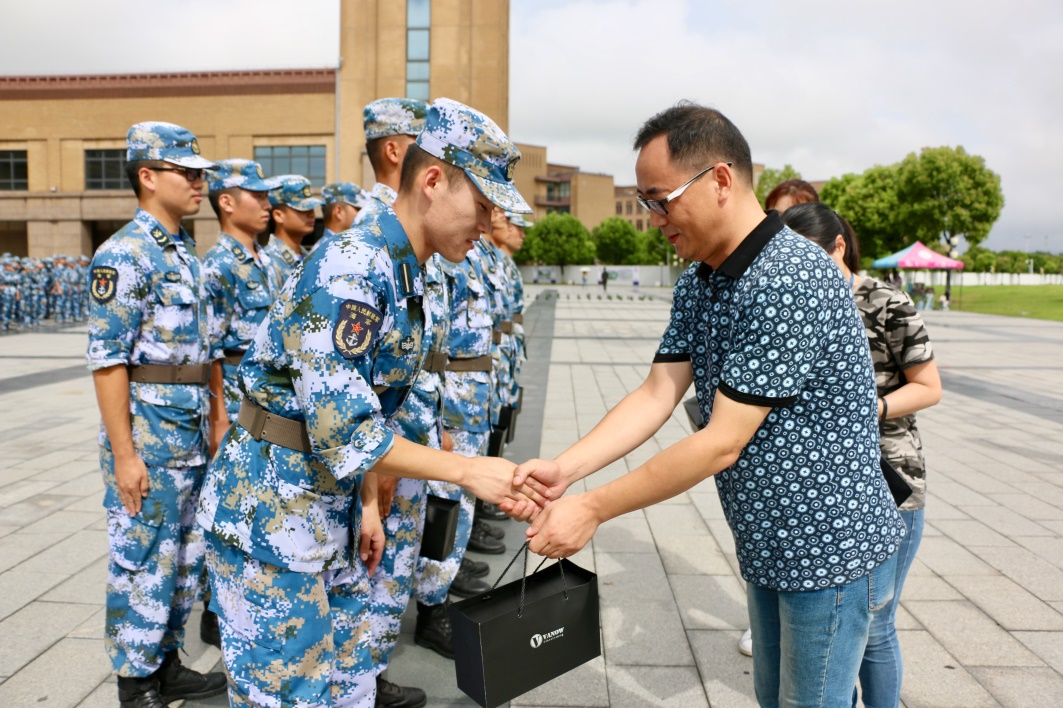 9月3日上午,商学院党总支书记项军、党总支副书记兼副院长陈秀春一行在学生工作办公室主任陈庄瑜以及新生辅导员周游、张尧、李晴的陪同下来到军训场地,看望并慰问了承训部队教官。