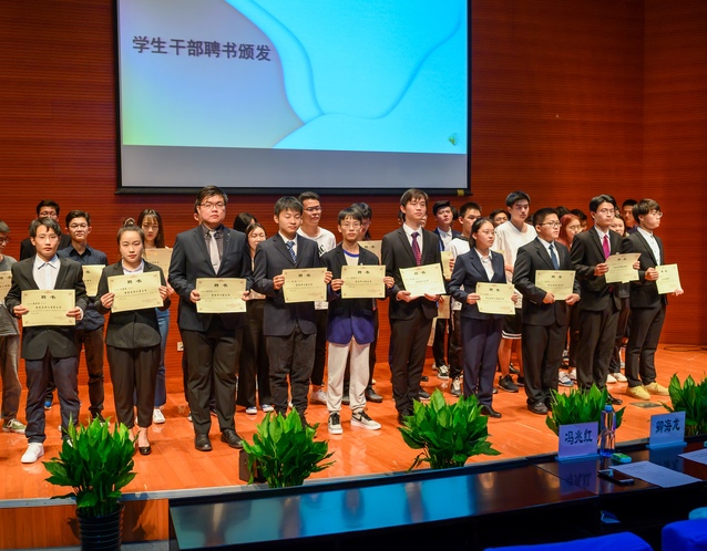 大会在雄壮的国歌声中拉开帷幕,首先由冯兆红老师宣读电气学院团总支、学生分会2019届新任学生干部名单;接着由岳宁等老师为上一届考核合格的优秀学生干部颁发聘书并合影留念。本次交流会各邀请了两名新老学生干部代表做交流发言。四名学生干部代表均从自己的岗位经历出发回忆了自身进入学生会的初衷表达了对学院团学工作的热爱并向在座的刚刚加入团学组织的萌新们分享了自己在工作中的经验和收获,