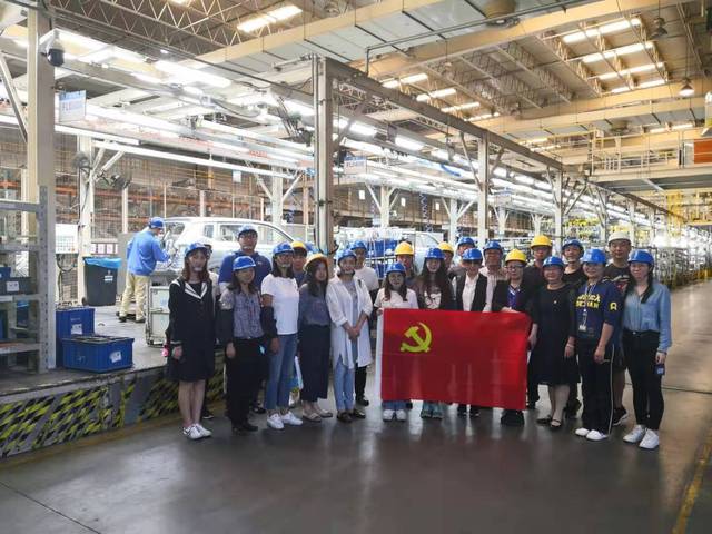 在车身生产车间,党员同志们目睹了从车身的框架、车门、底盘等一系列的压膜、焊接、组装、打磨等生产流程,车间里的操作人员熟练操作着各种数控设备来操控机器人完成各项具体任务。在整装车间,党员同志们感受到了先进制造水平对汽车行业发展的重要。车身、座椅、仪表、内饰,到发动机、轮胎、车门等部件经过一整套集成自动化生产线的组装成为一辆完整的车,通过一系列的雨淋、测速、电子设备的检测环节,一辆辆崭新的汽车从这里走向市场,走进千家万户。这也引发了党员同志们的思考:随着智能制造产业的日趋完善,如何培养出更加符合国家发展和社会需要的高水平技术应用型人才,如何助力他们的成长,为他们今后的职业发展贡献力量是我们义不容辞的责任和使命。