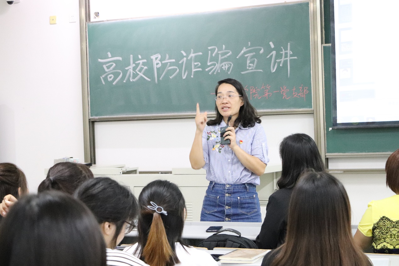 宣讲最后,第一党支部组织委员周萍老师做了简单总结,并结合实际向大家讲解当前校园安全问题,提醒大家提高警惕,减少不法侵害,切实维护自身利益。