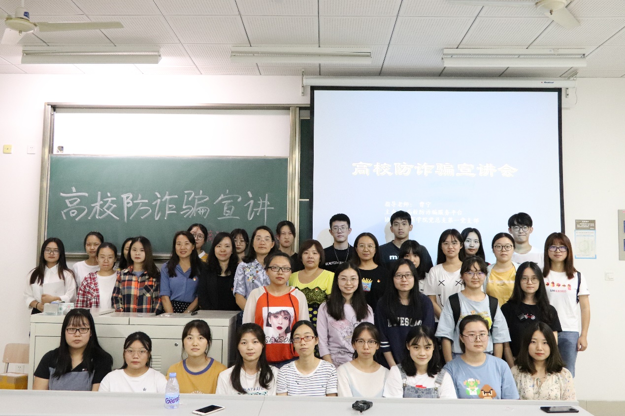 此次宣讲活动由诈骗类型及预防措施介绍、观看警示片、现场答疑互动三个环节组成,主讲人是物流1813班余辉辉同学,我校创业训练项目《高校防诈骗服务平台》的团队成员。以学生的角度为学生讲述防诈骗安全教育,更容易深入人心。在宣讲过程中,同学们频频点头表示赞同,在互动环节同学们也是踊跃提问,现场欢声笑语一片,气氛十分活跃。