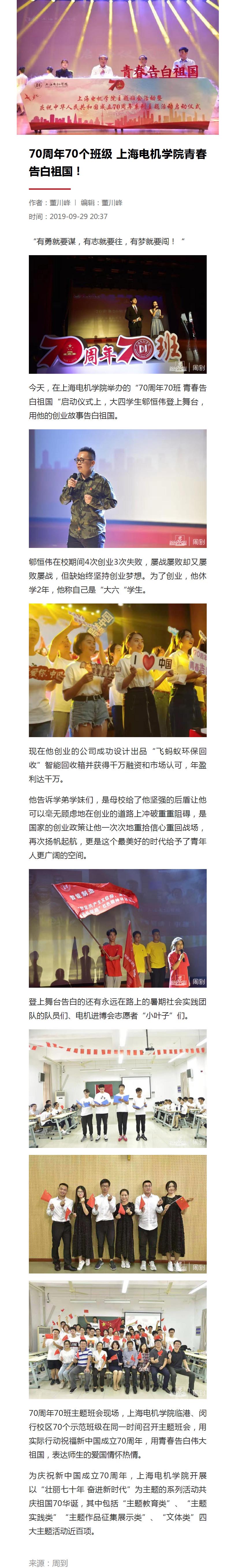 【周到】70周年70个班级 上海电机学院青春告白祖国!