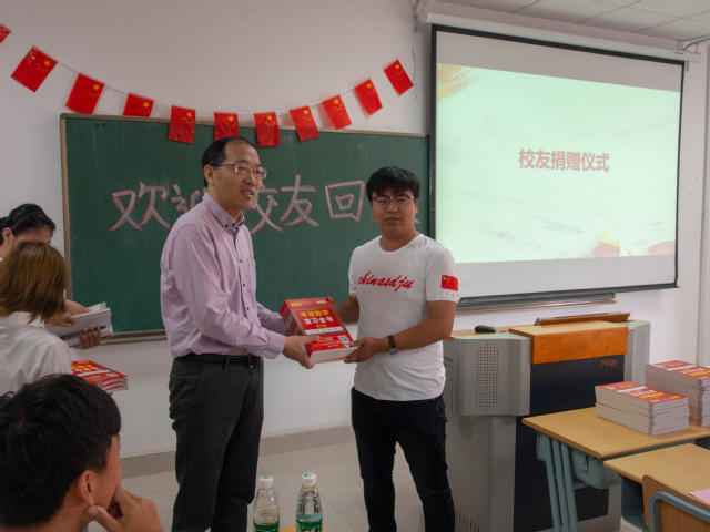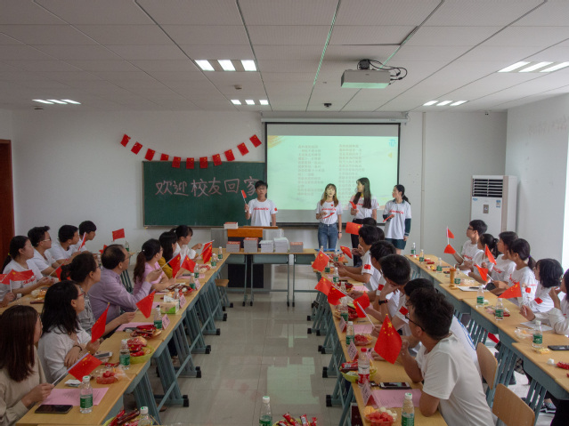随后,特别策划的“校友助力信息学子考研深造”以及“校友助力信息学子学涯职涯成长”行动依次开展。校友代表分享了各自在校难忘的学习、考研经历以及毕业后的职业发展历程,薛志伟校友结合自身经历谈到了“目标”和“坚持”的重要性,告诫同学们在选择中一定要明确初心使命,牢记自己的“心之所在”,在做出适合的选择之后,也一定要坚持不懈,努力奋斗,这样才能收获属于自己的美好未来。同时,他还带来了价值千元的考研复习资料,现场赠送给决心考研的学子们。易思远校友强调职场中“沟通”的重要性,提醒同学们要在大学四年利用各种平台、抓住各种机会参与实践锻炼,提升自己的沟通交流能力。最后,同学们就学历深造、学业规划、职业发展等问题,与校友们充分互动交流,现场气氛热烈,校友们一一耐心回答,让同学们豁然开朗,明确了今后努力的方向与路径。座谈会最后,由学生代表带来的诗朗诵《祖国颂》激起了全场的爱国热情;全体师生一同挥舞小国旗,齐声高唱《我和我的祖国》,在深情的歌声中,系列活动圆满落下帷幕。