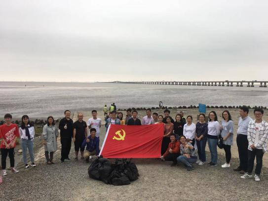 本次活动中,全体同志观看国庆献礼影片《中国机长》。影片中航班机组以顽强的意志面对极端环境下的高空低温、极度缺氧,以坚定的信念守护极度恐慌的乘客们,共同完成一次生命的奇迹。“敬畏生命、敬畏职责、敬畏规章”不仅是一句口号,而是一颗种子,与支部全体党员的初心和使命相互共鸣。观影结束后,党员教师学生们来到东海之滨,弯下腰、抬起手,用汗水换回一片干净的东海海滩美景。大家不怕脏不怕累,三两成群带走了一袋袋垃圾,不喊口号、不搞形式,坚持思想引领实践,落实化为行动。