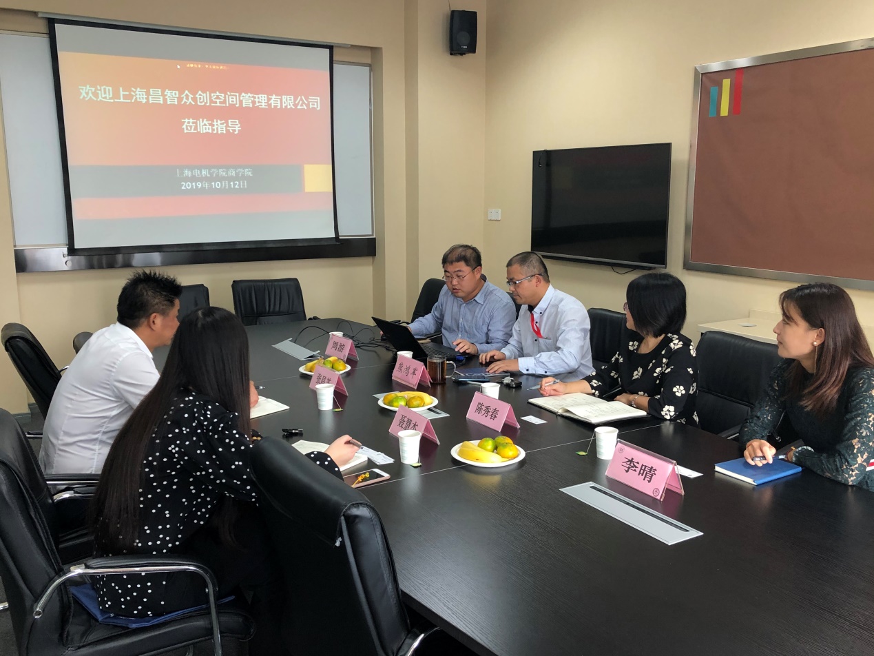 2019年10月12日上午,上海昌智众创空间管理有限公司总经理张昌芝、发展部经理聂慧杰一行赴我院举行合作洽谈,商学院党总支副书记兼副院长陈秀春、副院长熊鸿军以及负责就业工作的辅导员老师参加了本次会议。
