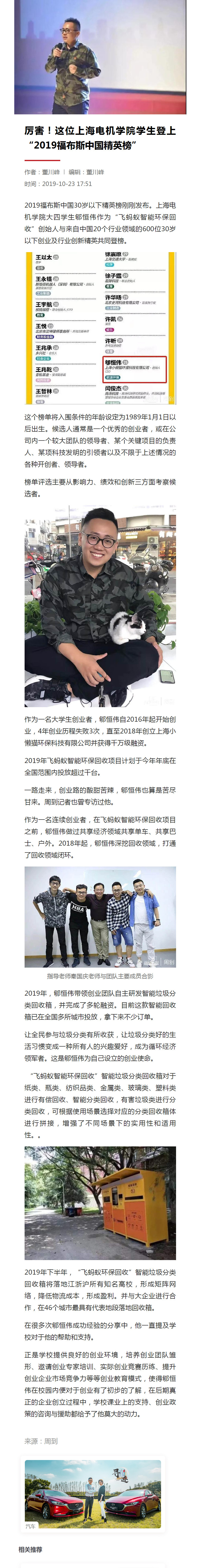 【周到】厉害!这位上海电机学院学生登上“2019福布斯中国精英榜”