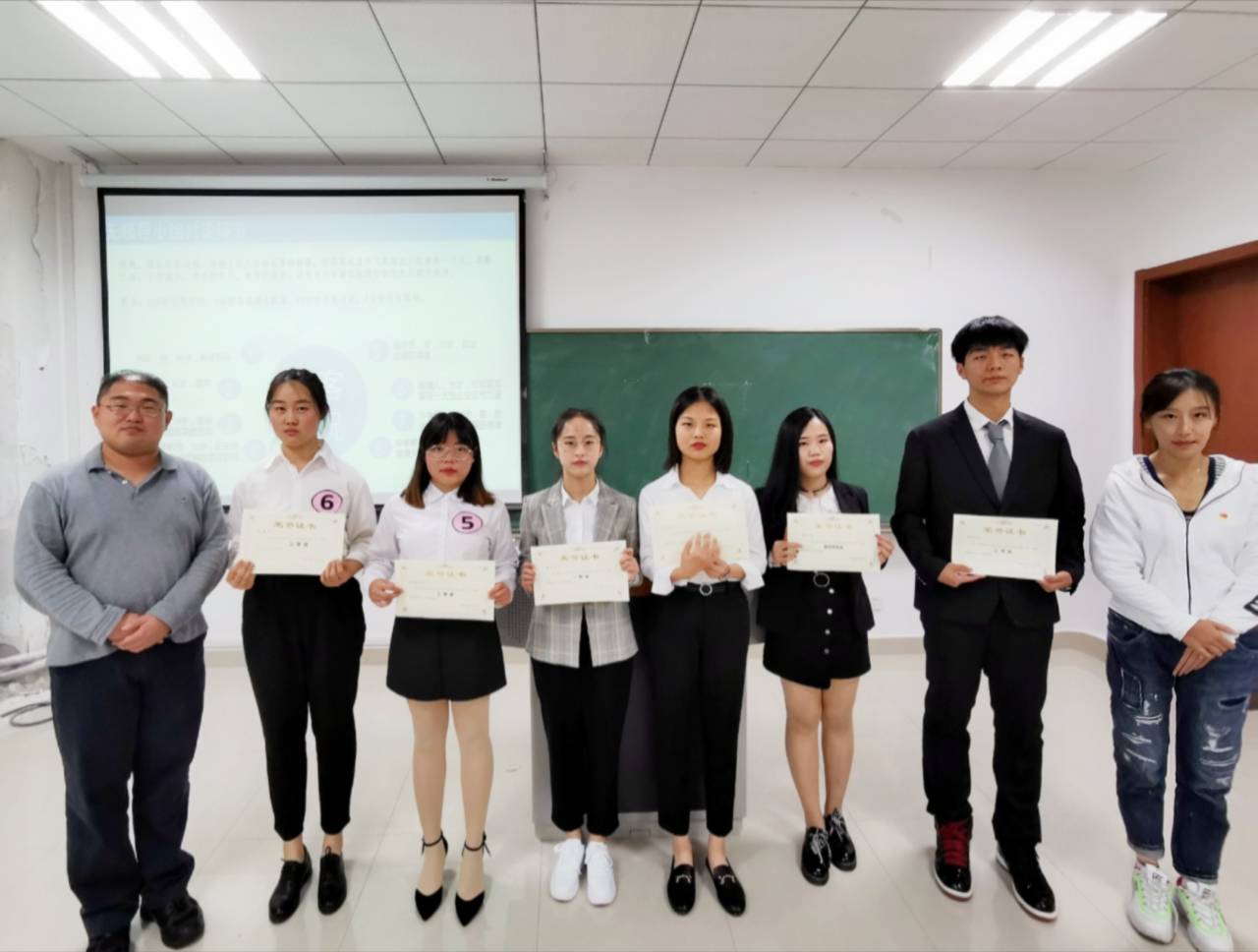比赛后程,由评委老师们打分,就业办干事统计,最终由国贸1721谭晶荣获一等奖、金融1812郑宇宏、金融1811陶昕洋荣获二等奖、营销1711皮晓玲、财管1712宋美美、物流1811张宇鑫荣获三等奖。金融1811陶昕洋、营销1711皮晓玲分别荣获“最佳口才奖”和“最佳风采奖”。