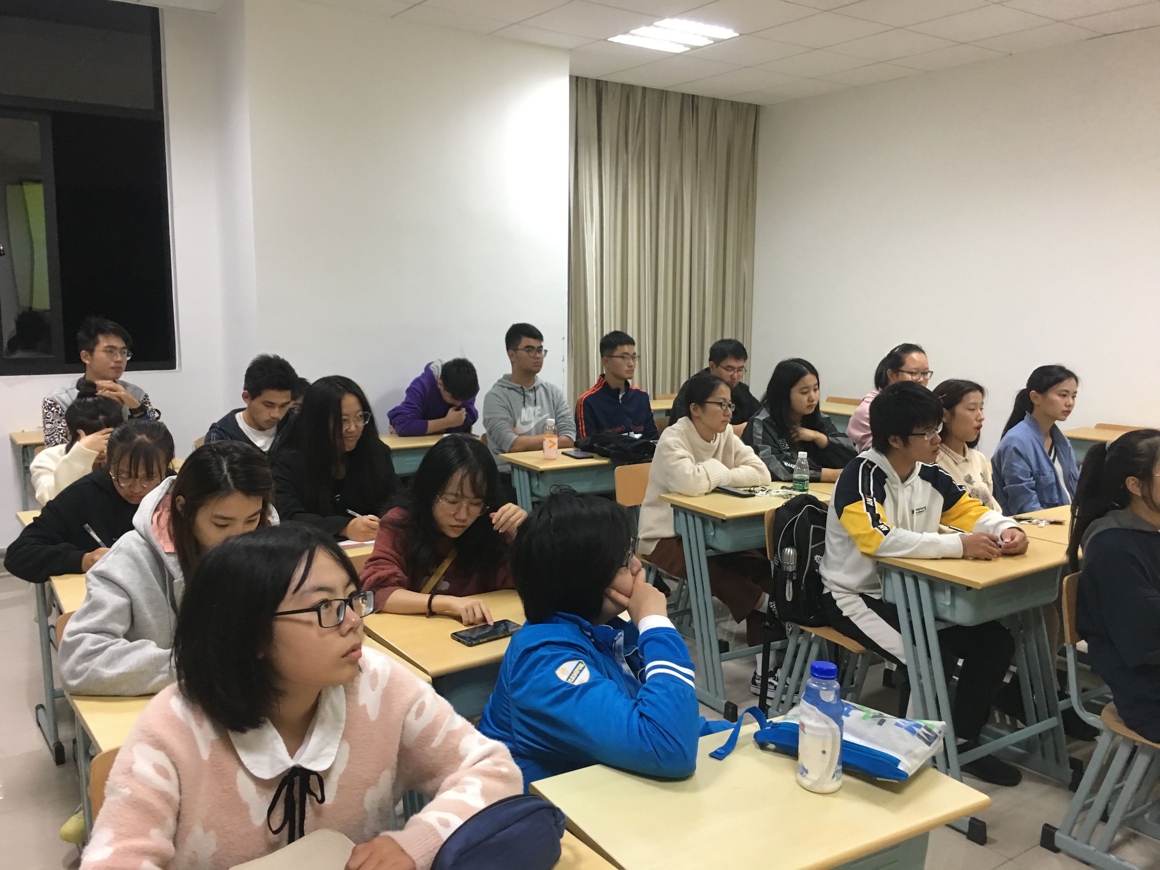 接下来,王子军老师引用怀特海的言论:“在中学里,我们伏案学习;在大学里,我们应该站起来,四面瞭望”,指出了大学生读书的重要性。读书不仅可以帮我们发现自我的内心世界,又能帮助我们了解周围的世界,建立属于自我的思维框架。最后,王老师又提出了同学们应该如何读书:选对书籍,高效专注,不求甚解。只有这样,同学们才能通过阅读达到提升自我的目的。