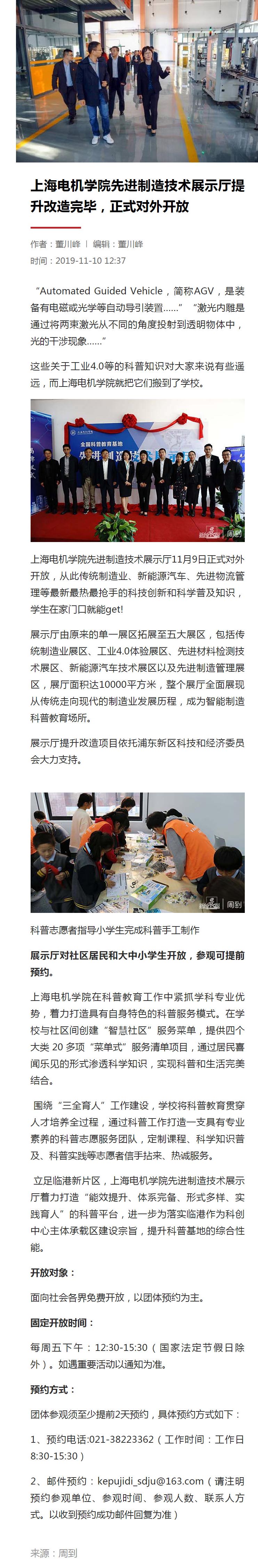 【周到】上海电机学院先进制造技术展示厅提升改造完毕,正式对外开放