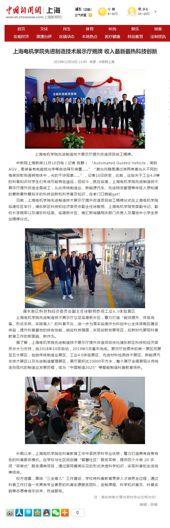 【中国新闻网】上海电机学院先进制造技术展示厅揭牌 收入最新最热科技创新