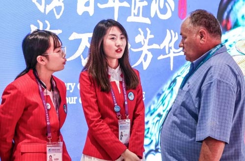 在进博会的会场里,他们身穿白色或红色的志愿者统一服装,用温暖的笑容、贴心的服务、勇敢的坚持,践行着出发前许下的诺言:“向前进,博青春,为进博,一起来!”